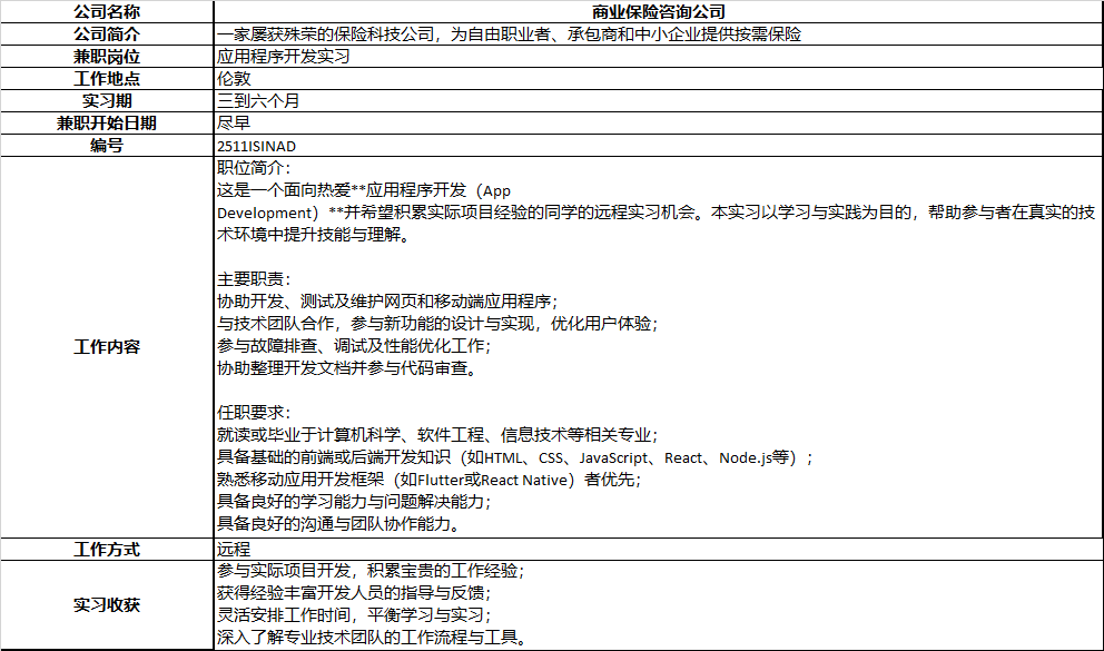 | Z.X | 伦敦会计事务所 | 会计实习生 | Offer image | ![]() | 金融 | 实习 |