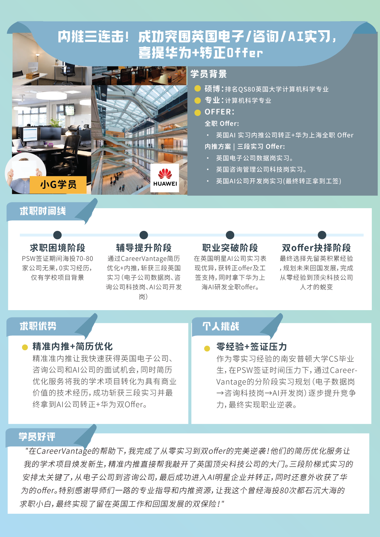 | 学员名字 | 公司 | 职位 | offer | 评价/公司简介 | 行业 | 全职/实习 |