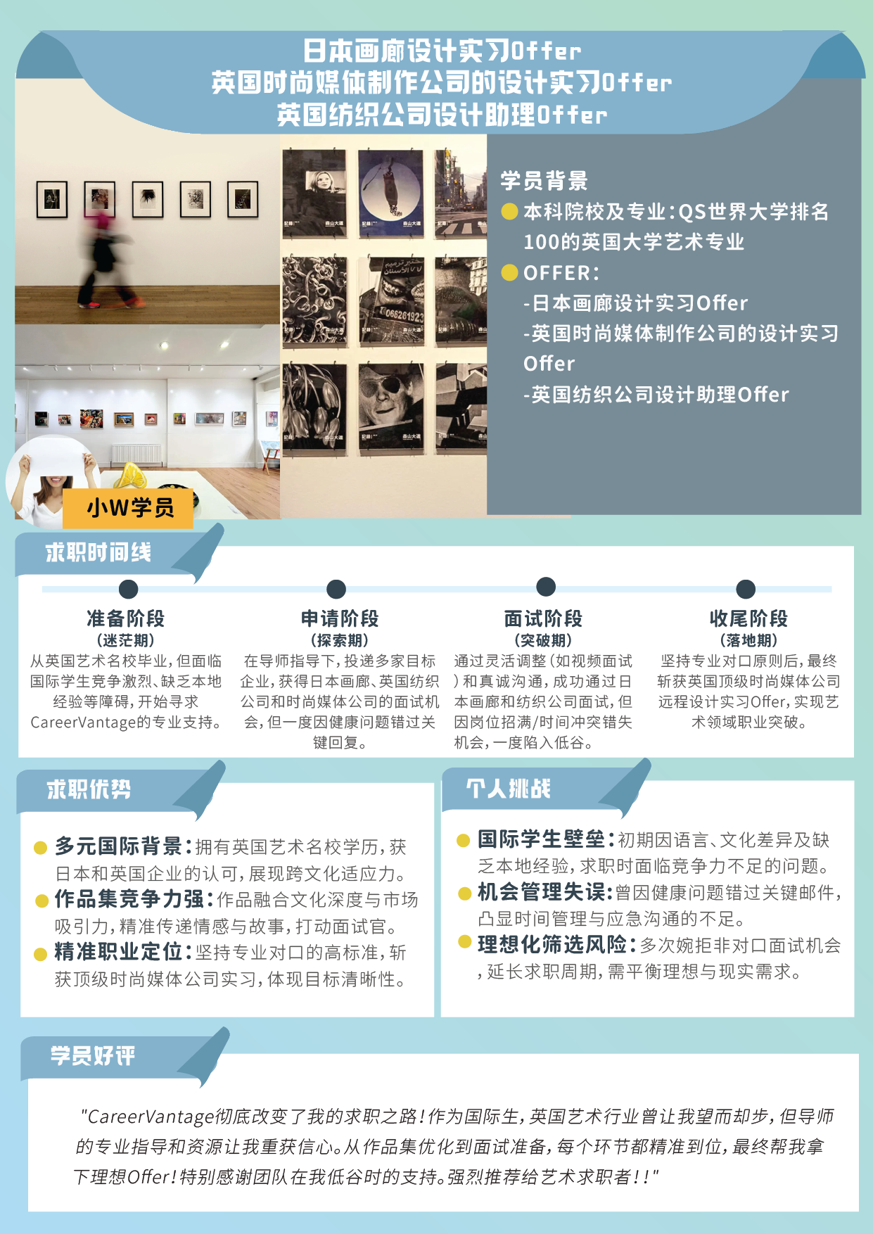 | Y.W | 画廊 | 非营利组织画廊实习 | Offer image | ![]() | 艺术 | 实习 |
